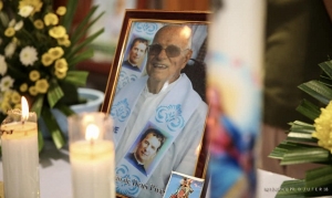 DILI:Prezidente Repúblika, Francisco Guterres Lú Olo, akompaña husi nia espoza Cidália Mousinho Guterres Lopes, Segunda (23/09), presta omenajen ikus ba Pe. Padre João de Deus.